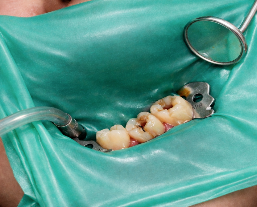 根管内に細菌が侵入すると、治療の成功率は著しく低下します。そのため、不要な汚染を遮断できるラバーダムは、根管治療において欠かせない器具です。