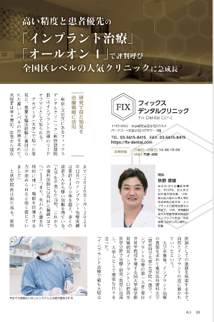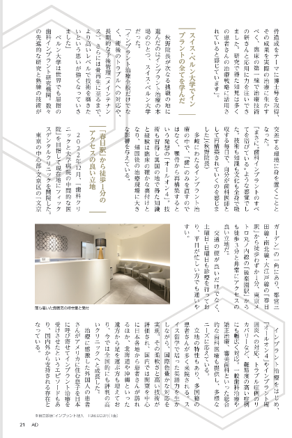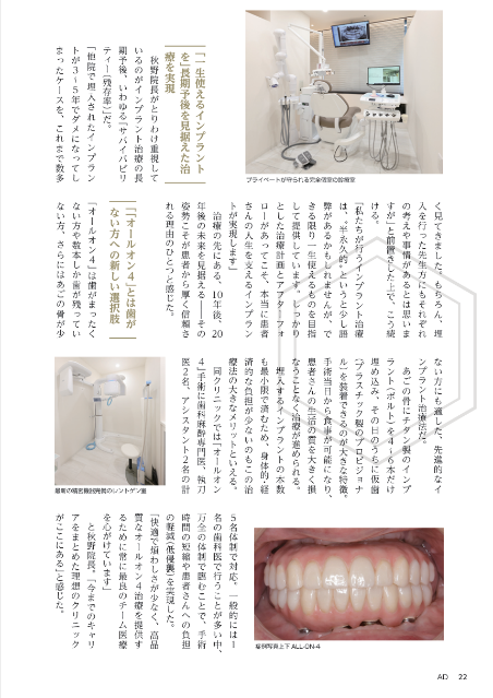 インプラント治療の一つである「ALL-ON-4(オールオン4)」特集に選出され、掲載されました。